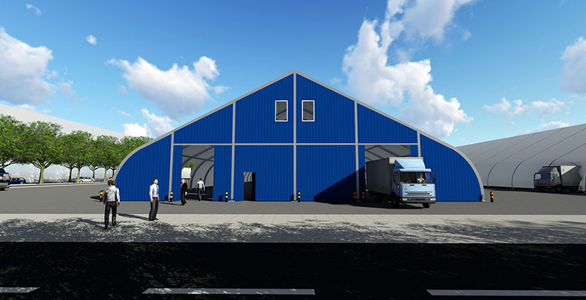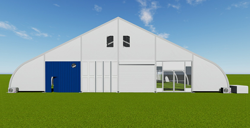 桃型篷房的結(jié)構(gòu)采用單元組合式設(shè)計,長度可按5米間距增長或減小。支架材料采用高強度鋁合金(材質(zhì)6061-T6),篷布為阻燃的雙面PVC合成纖維布。