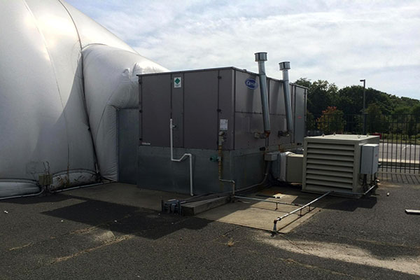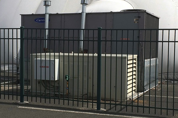 智能控制系統將新風調節系統、制冷與供暖系統、備用發電機組、室內外環境監測系統集成于一體,對氣膜建筑進行全方位的智能化控制,如果能配備一臺PC機,還可以實現無人值守的遠程控制。可以根據內部溫度、外部風速等參數,對風機的速度、制冷和供暖量進行調節。在節能的前提下,達到最佳的舒適狀態。