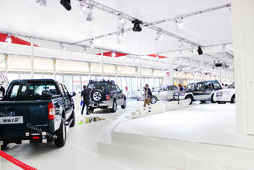 此次高山篷房還為汽博會提供大量的內部配套設施,例如中央空調、地板、玻璃門、玻璃墻、燈光舞臺等。我們通過做好相應的配套設備,力求為所有大型車展,慶典,活動等提供服務,讓客戶省心與安心。