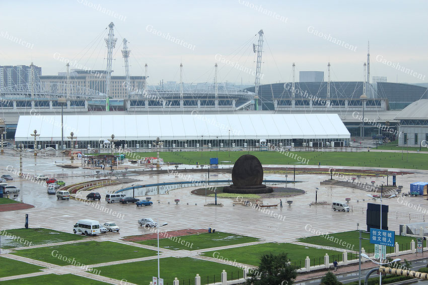 在本次汽博會中,高山篷房提供了超過20000平方米的展會篷房,包括了新車展示區、簽到區、洽談區、休息區、等候區、餐廳服務區等多個區域的臨時建筑。通過使用各式形態的裝配式鋁合金帳篷,及時地解決了長春汽博會場館緊缺的問題。此次特提供了大跨度人字形帳篷、弧形帳篷作為新車展示區的主場館。