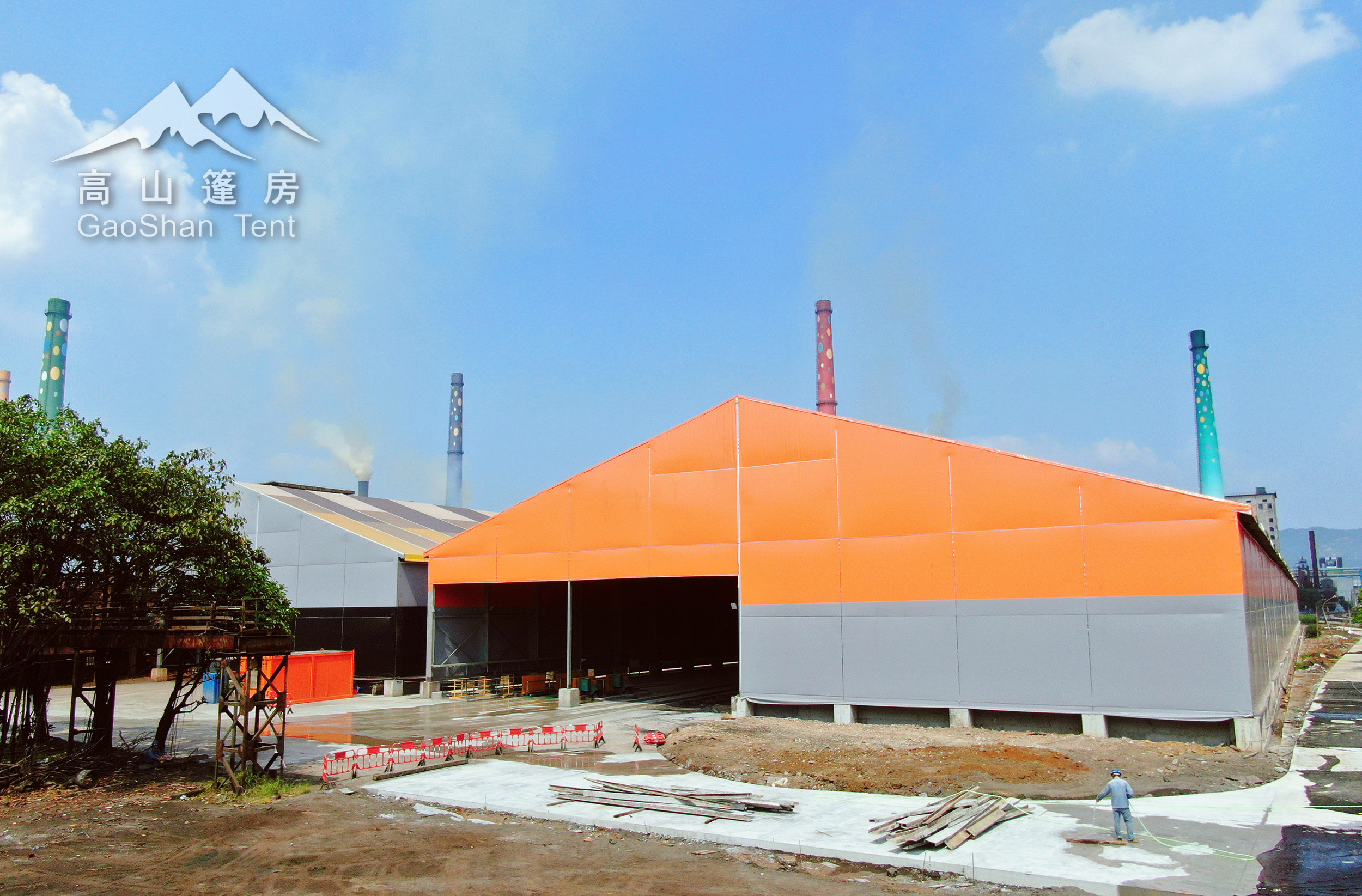 高山篷房可選跨度3-70米,邊高2.8-8米,長度可按3M或5M的倍數延伸,內部無梁無柱,極大地提高了空間的使用率。篷房內部可優先采用自然光以節能減排,也可配備照明系統。高山篷房可提供多樣化配套,排水槽、玻璃門、ABS硬體墻、卷簾門等,使內部空間更加靈活多變。加上高山篷房具備防風、防雨、防雪、防火、防紫外線等特點,滿足了工礦企業的環保需求。