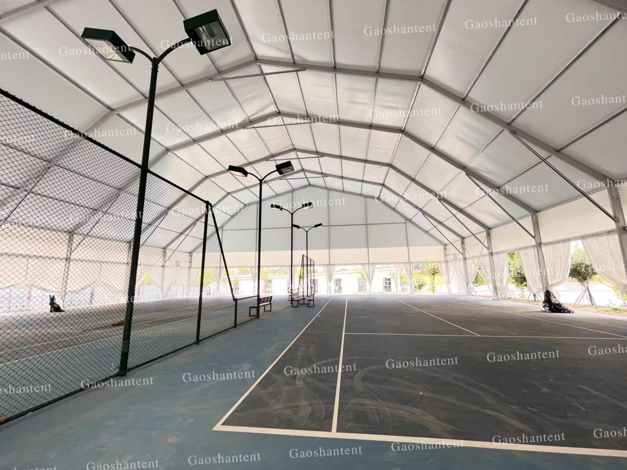 多拱型篷房除了造型新奇外,與人字篷房相比,其頂高能做到更高,內(nèi)部空間擴(kuò)大,更適用于網(wǎng)球等球類運(yùn)動(dòng)場(chǎng)景。網(wǎng)球館四周篷布可以拉開通風(fēng)也可以無(wú)縫圍起遮風(fēng)擋雨。
