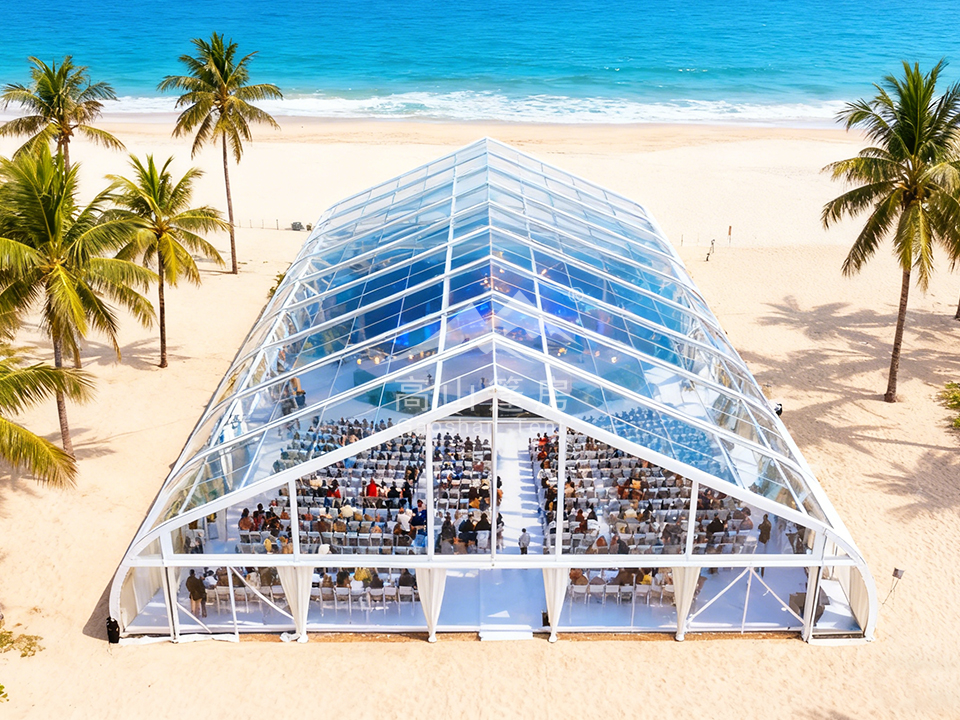 桃型篷房選用高強(qiáng)度鋁合金框架與雙面PVC涂層篷布,材質(zhì)輕便但結(jié)構(gòu)穩(wěn)固,抗風(fēng)等級(jí)可達(dá)8-10級(jí),耐火標(biāo)準(zhǔn)符合B1級(jí)阻燃要求,能適應(yīng)-30℃至70℃的溫差環(huán)境。其模塊化組件支持快速拆裝,千平方米空間可在1天內(nèi)完成搭建,且無(wú)需復(fù)雜地基處理,草地、水泥地、沙地均可直接部署。此外,篷布具備自潔、防紫外線、防水功能,長(zhǎng)期使用仍保持美觀。