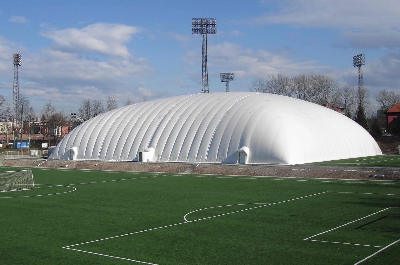 氣膜靠內外氣壓差來支撐整個建筑,具有跨度面積大、靈活方便等特點,氣膜形狀一般為常規的拱形結構,但隨著市場需求的變化,可量身定做滿足客戶需求的形狀,用于大型建筑,如體育館、航空港、候機大廳,工業廠房、倉庫等。