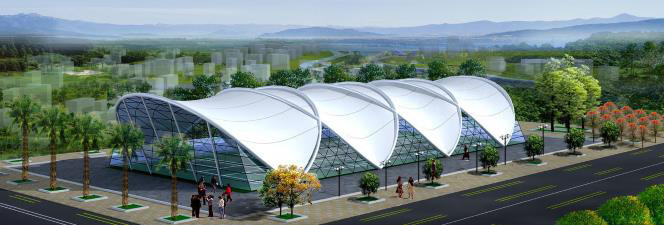 鋼結構膜材覆蓋是一種新型的建筑材料,廣泛運用于各行各業,其特性柔軟,防老化,耐疲勞,自潔功能強,防腐蝕,他與輕鋼龍骨的結合,堪稱金鑲玉,可以篷蓋天下。 這種產品適合跨度大,永久的場地,比如:煤場,礦山,火車站臺覆蓋等。