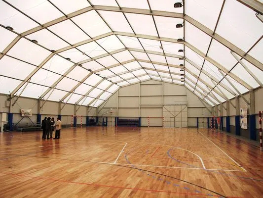 大型室內體育館篷房屬于臨時建筑,采用組合式的方式將所有材料直接運到現場組裝搭建,結合模塊化方式操作靈活,在短期內就可以投入使用,安全空間使用低成本。